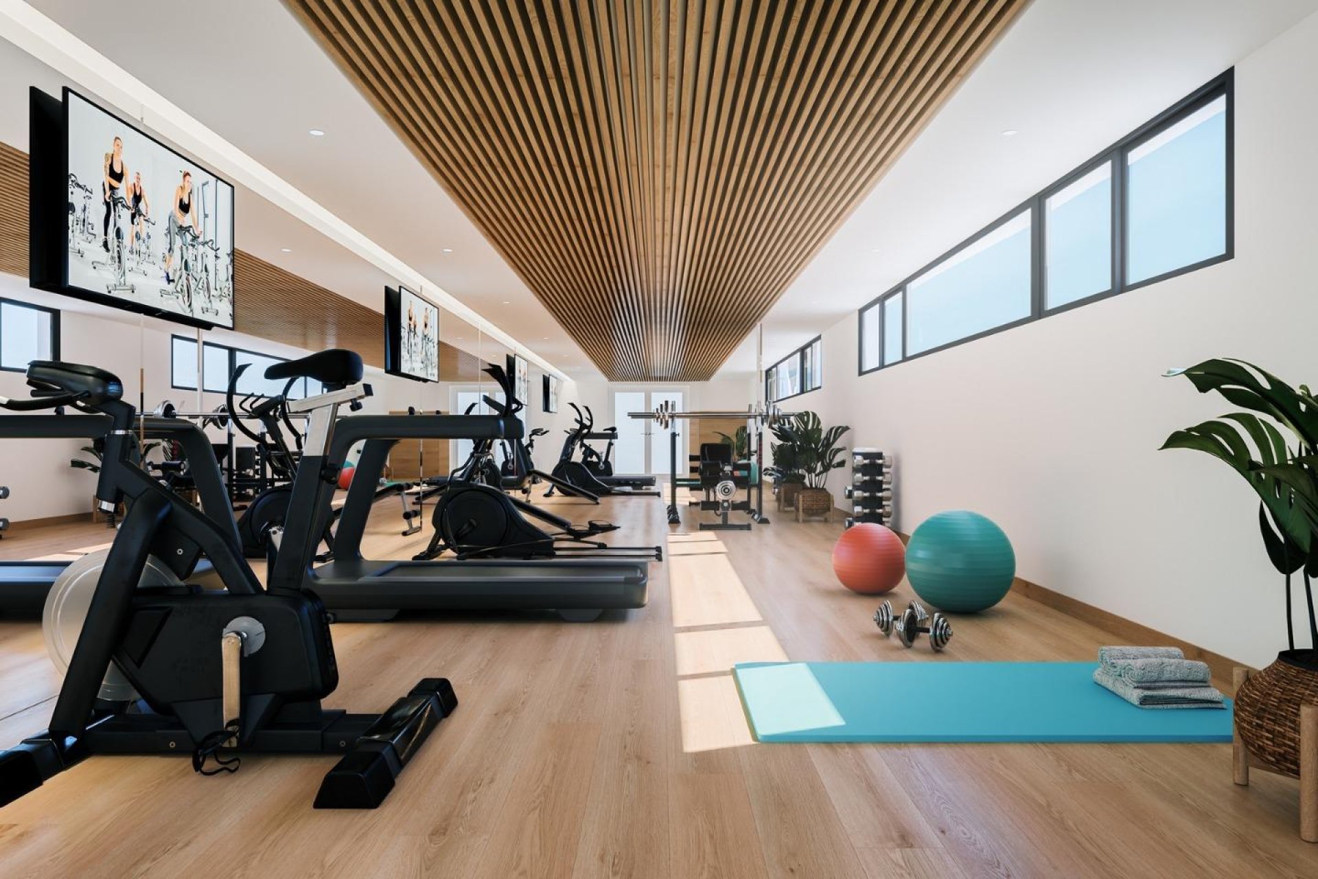 Große Terrassen ermöglichen es Ihnen, die Natur von jedem Winkel Ihrer Wohnung aus und zu jeder Jahreszeit zu genießen. Eine Möglichkeit, die in den Gemeinschaftsbereichen dank eines umfassenden Angebots an Freizeit-, Sport- und Entspannungseinrichtungen noch erweitert wird.
