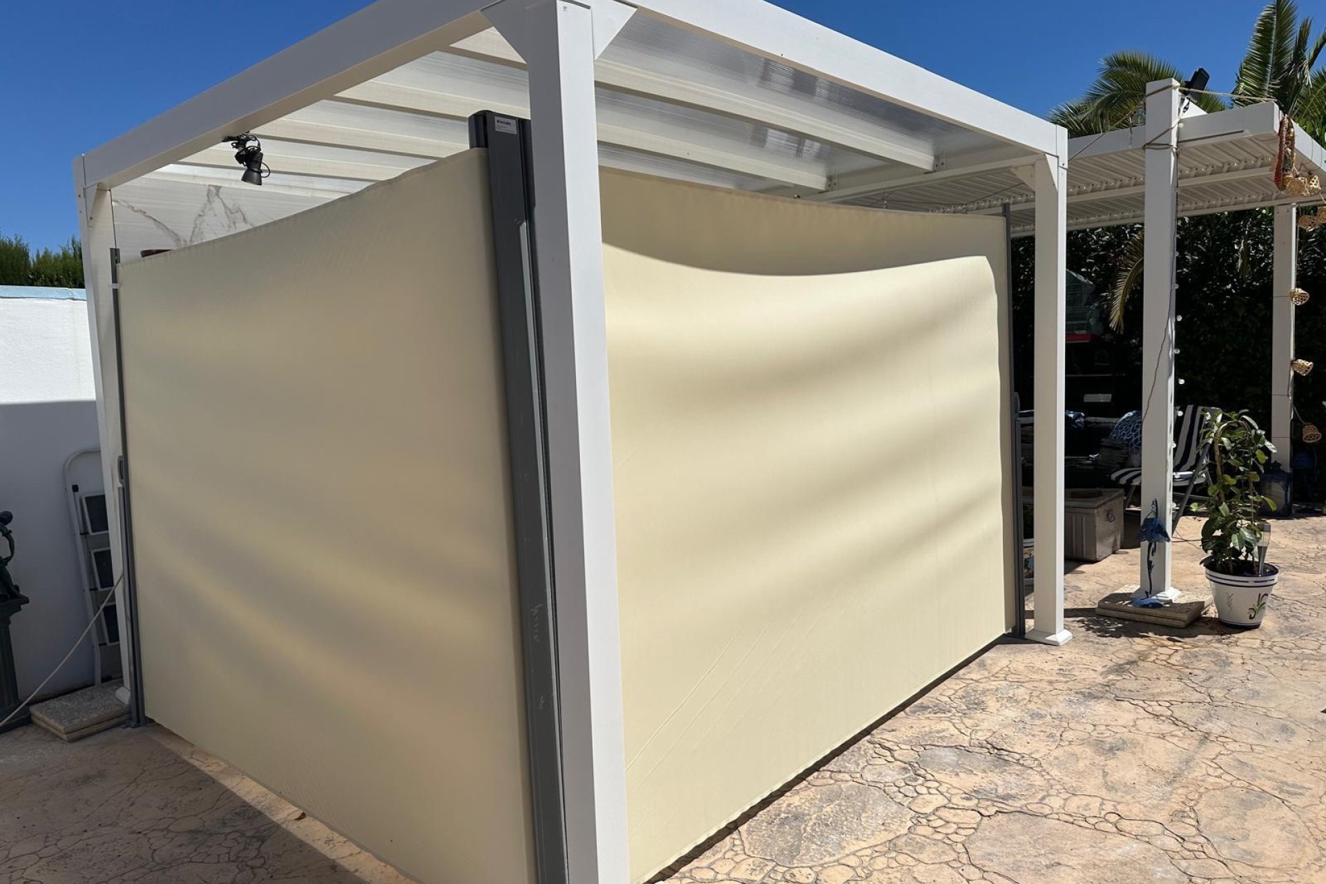 This beautiful villa in perfect condition is located in a very quiet residential area between the two villages of Hondon, with all amenities nearby. It comprises a spacious veranda overlooking the pool and garden, a living room with open-plan kitchen, two bedrooms and two bathrooms. A solarium offers superb views of the surrounding mountains. The garden has been carefully landscaped and features a swimming pool, several shaded terraces, a summer kitchen, parking for 2 cars, a garden shed and numerous flowers and fruit trees. The house will be sold fully furnished except for the television, garden furniture and water dispenser. 35 minutes from Alicante airport and the beaches.